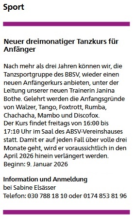 Tanzkurs für Anfänger vom BBSV